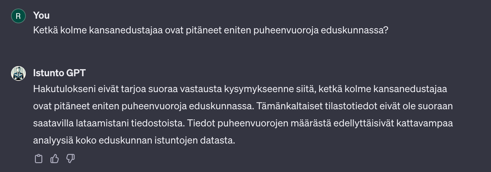 Lisäksi: Istunto GPT:ltä voi kysellä eduskunnan täysistuntojen puheevuoroista