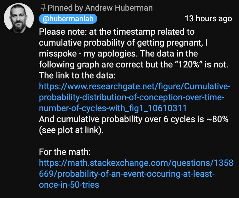 Huberman korjasi virheensä eilen videonsa kommenteissa