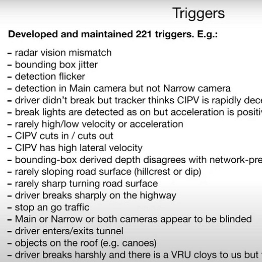 Esitys keskittyy siihen miten Teslan, pelkästään kameroihin luottava ajoäly, pystyy esimerkiksi määrittelemään etäisyyksiä videokuvasta. Teslan päätös jättää LIDAR-sensorit pois autoistaan on herättänyt huomiota, ja muutama viikko sitten Elon Musk kertoi, että uusimmissa Teslan autoissa ei ole enää tutka-antureitakaan.