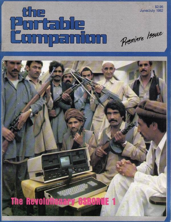 Sinofskyllä on kerännyt myös julkaisuun mahtavia kuvia. Alla kuva kirjan prologista, joka on The Portable Companion -lehden kansikuva vuodelta 1982. Kuvassa toimittaja käyttää Osborne-1 -tietokonetta raportoidessaan Afganistanin ja Neuvostoliiton välisestä sodasta.